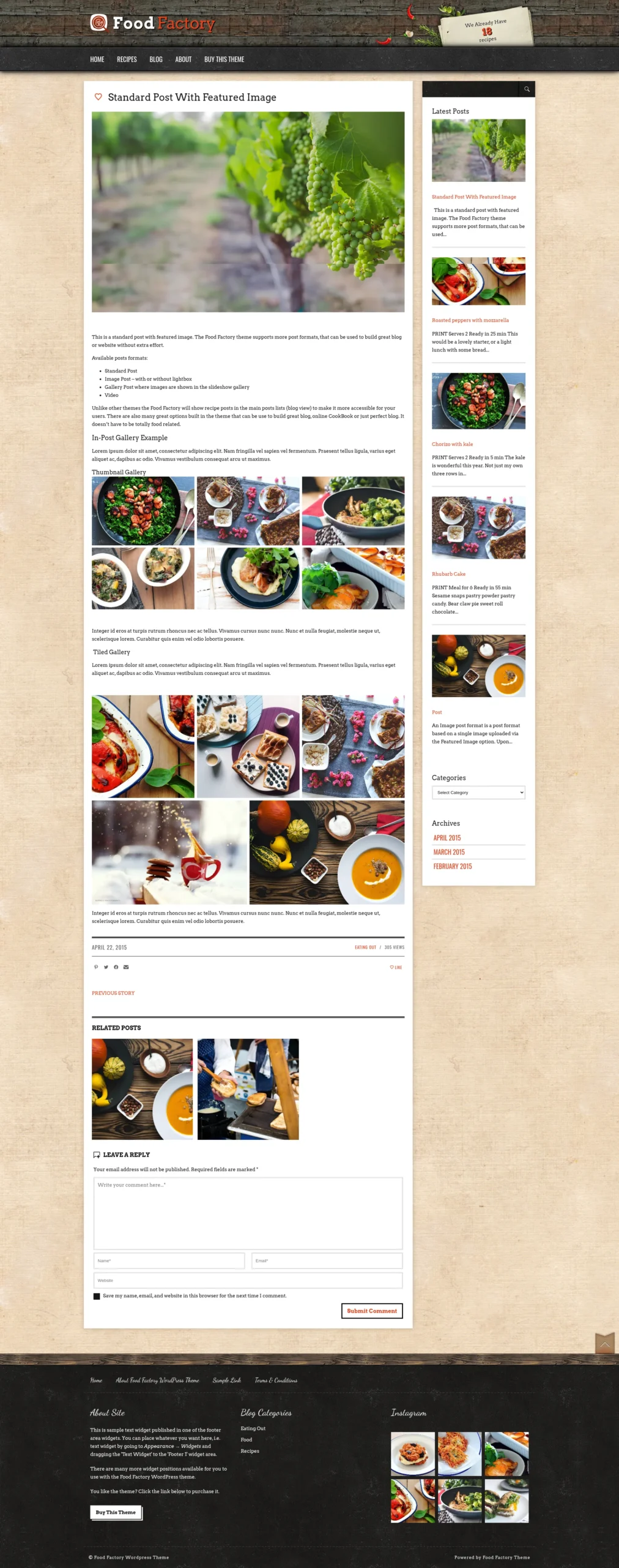 - Social media & sharing ready – the Food Factory theme has built in widgets for custom