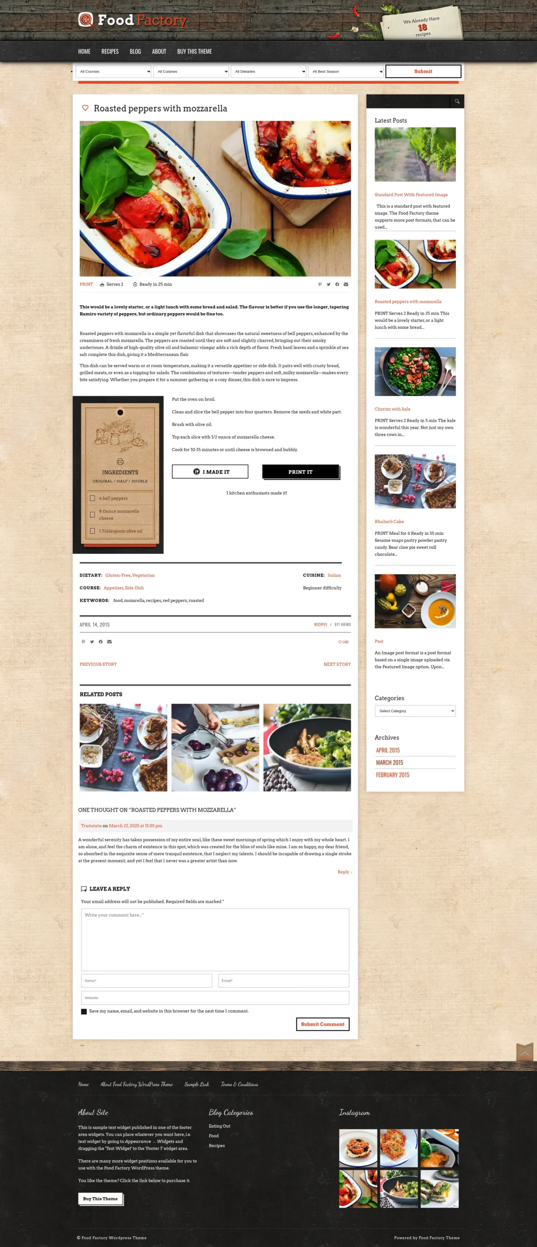 This is probably the most important feature in the food & recipe template. The recipe page has a lots of built-in features that allow you build your own food related imperium.